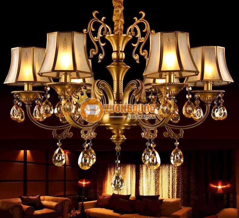 Đèn chùm đồng kiểu dáng cổ điển Châu Âu ATL9282 được làm từ nhiều chất liệu cao cấp như đồng, thủy tinh, pha lê đảm bảo mang đến một thiết kế chắc chắn, bền đẹp và có giá trị thẩm mĩ cao. Chao đèn trang trí cao cấp được thiết kế hướng xuống dưới nên ánh sáng tỏa ra từ bóng đèn vô cùng ấm cúng, nhẹ nhàng, thích hợp với mọi căn phòng ở nhiều không gian sống khác nhau. Các dải hạt pha lê được cắt gọt một cách công phu, tinh xảo mang đến khả năng tán sắc ánh sáng tốt giúp đèn trở nên đẹp hơn ngay cả dưới ánh sáng mặt trời. Dưới đây Siêu thị nội thất Tân Hoàng Gia sẽ giới thiệu đến quý khách hàng một số thông tin chi tiết nhất về mẫu đèn chùm trang trí cao cấp này.